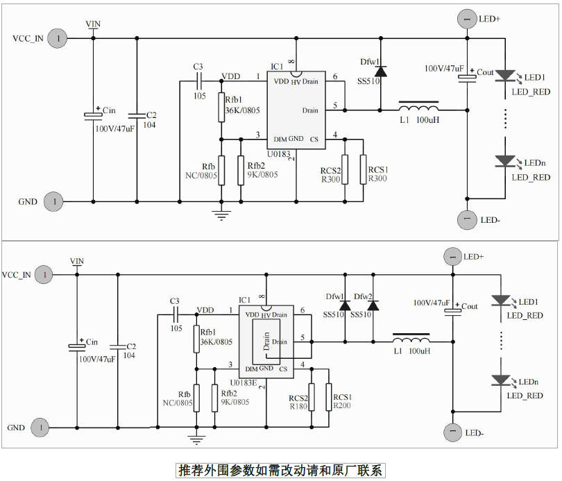 U0183(E)是一款內(nèi)置100V功率MOS高效率、高精度的開關(guān)降壓型大功率LED恒流驅(qū)動芯片。U0183(E)采用固定關(guān)斷時間的峰值電流控制方式。U0183(E)通過調(diào)節(jié)外置的電流采樣電阻,能控制高亮度LED燈的驅(qū)動電流,使LED燈亮度達(dá)到預(yù)期恒定亮度。在DIM端加支持線性電壓控制調(diào)光,進(jìn)行LED燈調(diào)光。U0183(E)內(nèi)部采用自供電結(jié)構(gòu),VDD UVLO保護(hù)以及過溫保護(hù)電路等,減少外圍元件并提高系統(tǒng)可靠性。