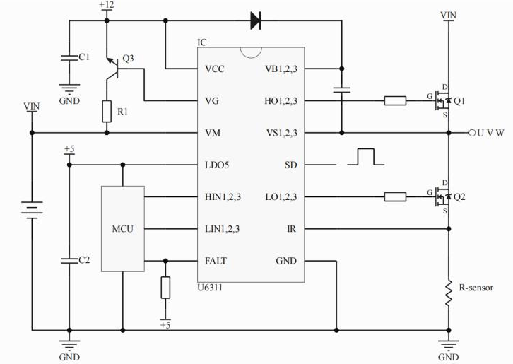 •主要特點(diǎn):懸浮絕對電壓: 70V;VM電壓范圍:5.0-70.0V; U6311 集成比較器(基準(zhǔn) 200mV);兼容3.3/5V 輸入邏輯;驅(qū)動電流:+1.5A/-1.8A(typ.);死區(qū)時(shí)間: 250ns (typ.);集成VCC和VBS欠壓保護(hù);集成12V LDO控制電路;集成5.0V LDO;5V LDO集成輸出短路保護(hù);過流檢測(U6311);負(fù)瞬態(tài)電壓承受能力;集成共模噪音消除電路;CPC24、SSOP24、QFN28 封裝